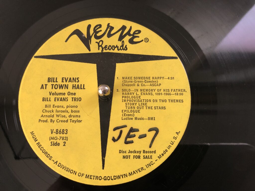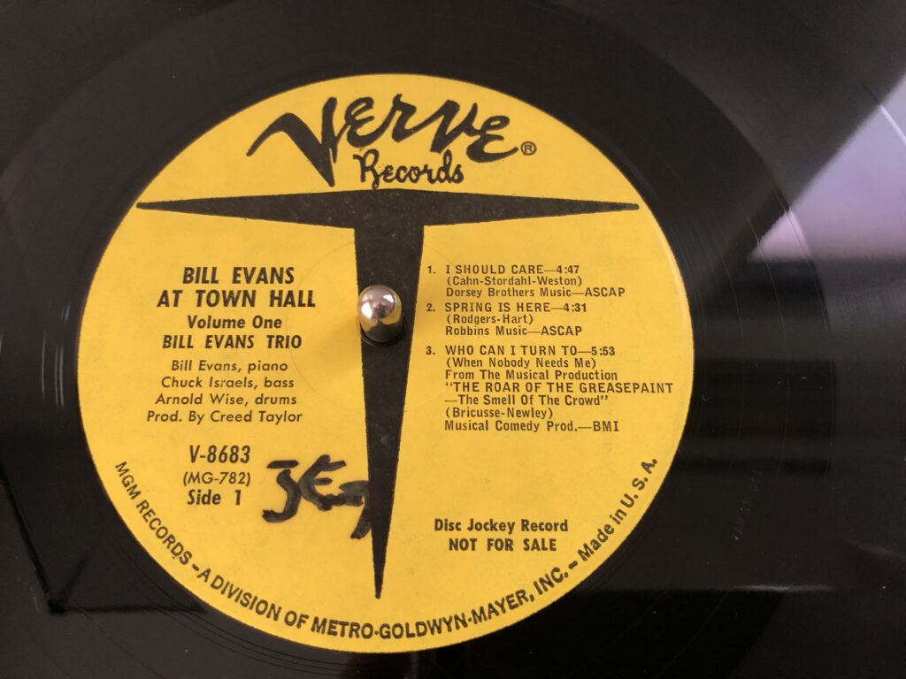 私の持っている盤、Bill Evans Trio Bill Evans At Town Hall (Volume One) V-8683 USモノラル黄ラベル・プロモ