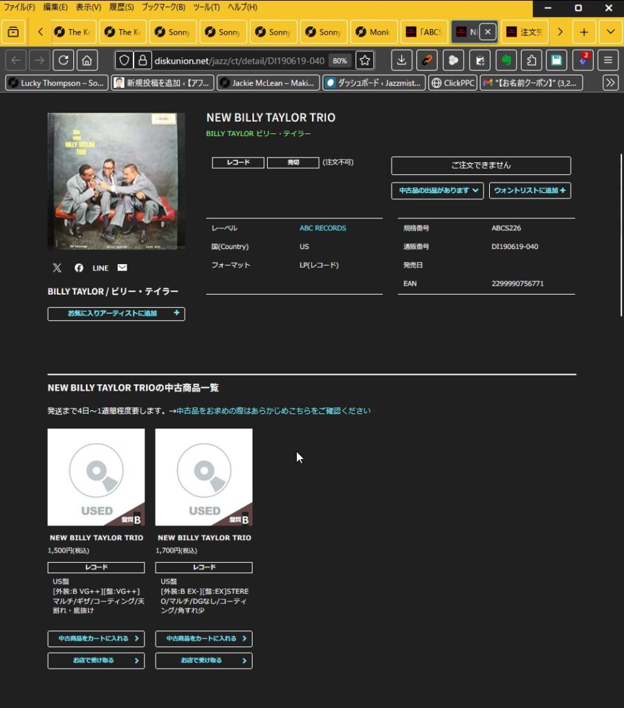 『1000円で買ったステレオ盤が、12000円のモノラル盤より音が良くて、マイッタ。』DU新宿ジャズ館の新着中古コーナーで、The New Billy Taylor Tiroステレオ盤を見つけた。オリジナル(たぶん)なのに、ナント1000円。盤…