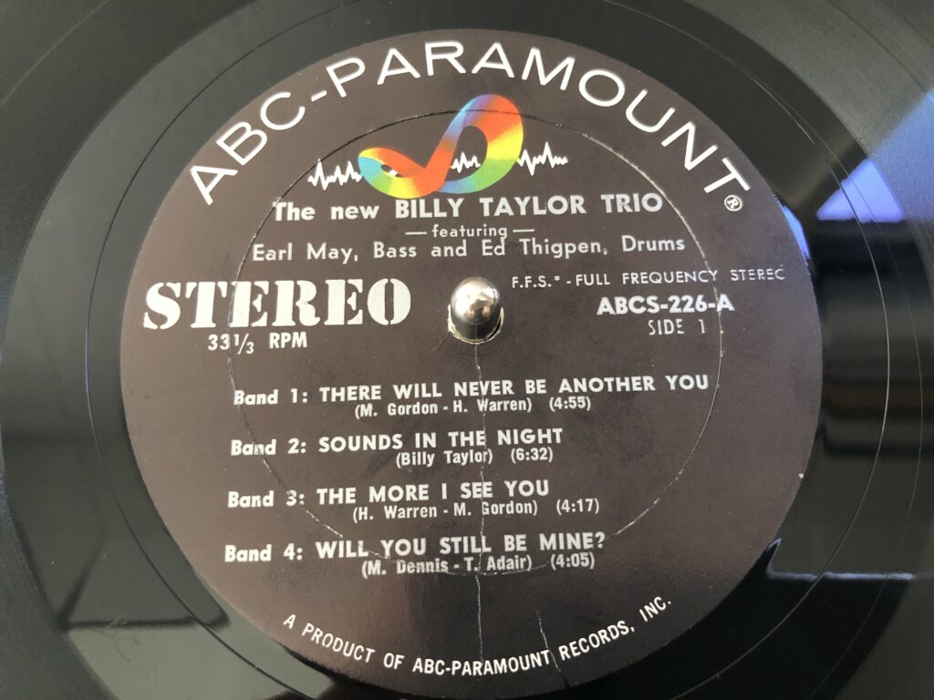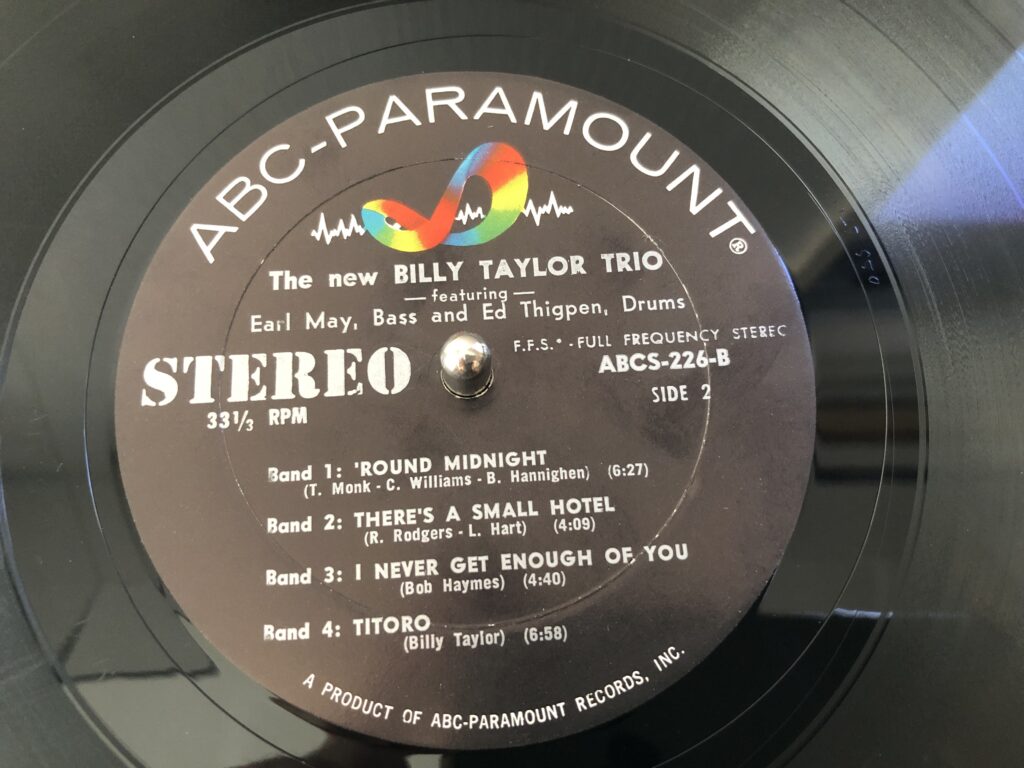 私の持っている盤、Billy Taylor Trio The New Billy Taylor Trio ABCS-226 USステレオ盤 DGなし