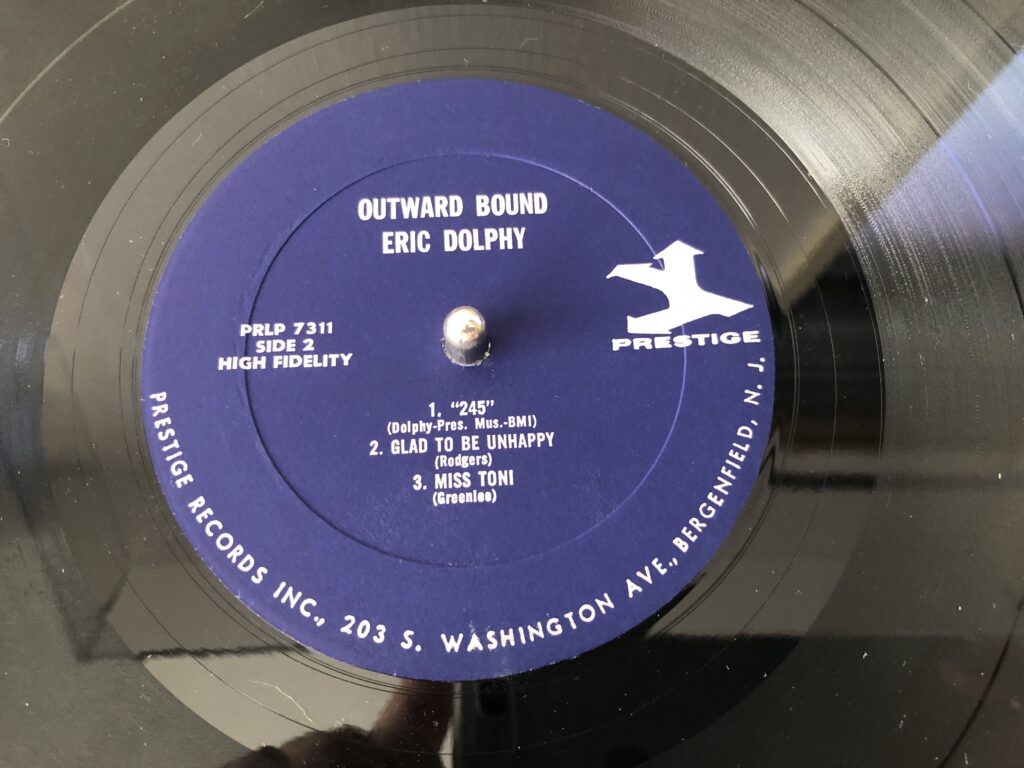 私の持っている盤、Eric Dolphy Outward Bound PR7311 NJLP8236刻印消し USモノラル 右紺 RVG