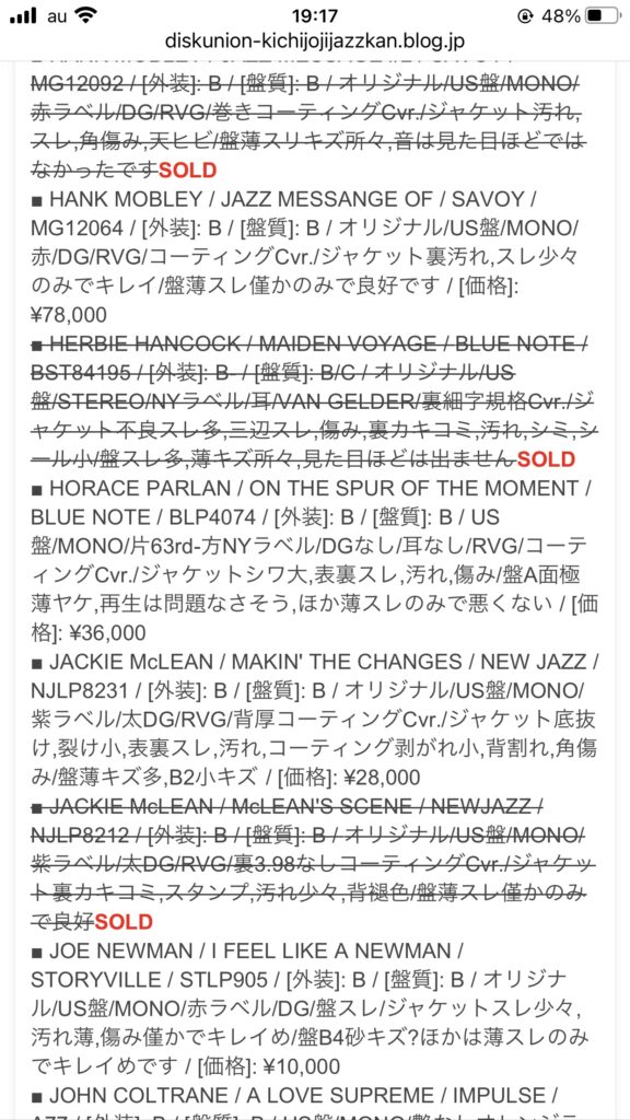 ハルズレコードさんで、私が今回紹介しているようなRVG刻印ありのみで、それ以外はオリジナル条件を持っていない盤が、3万円くらいの「特化」で販売されていましたが、全然売れていませんでした。