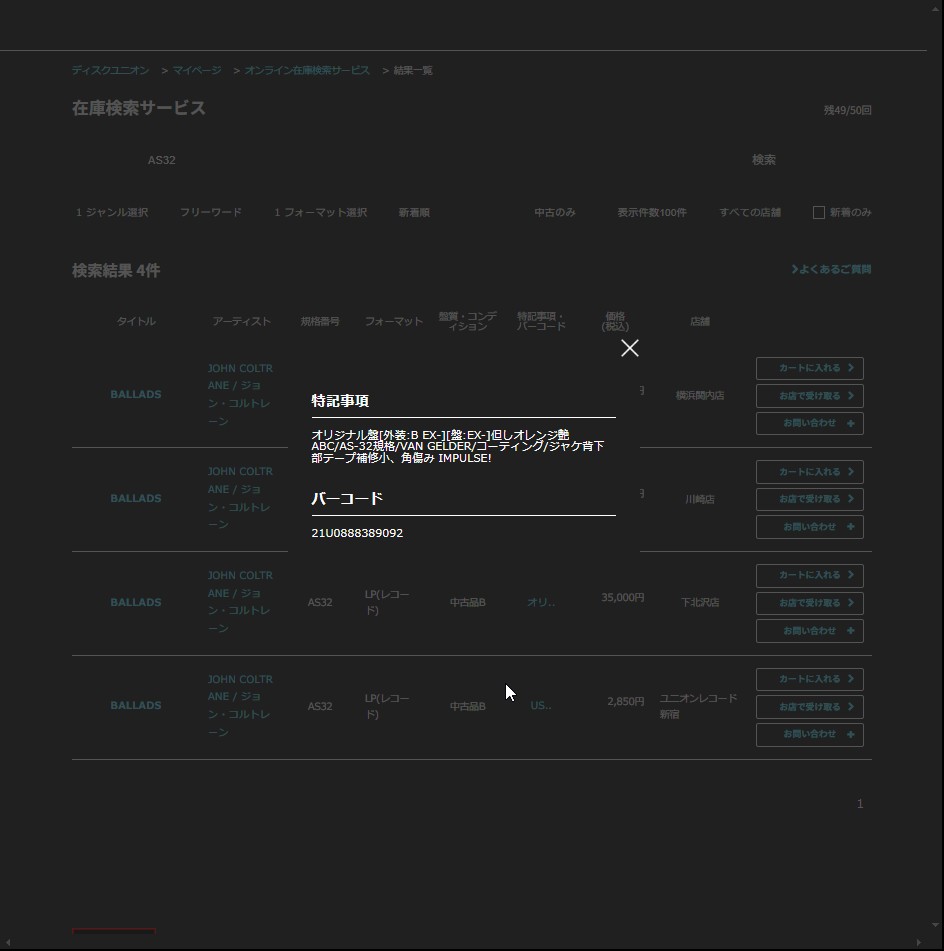 ジョン・コルトレーン、ステレオオリジナル(ABC)の35000円は相場からすると少し高いです。もしくは相場通りという感じで、決してお買い得ではありません。