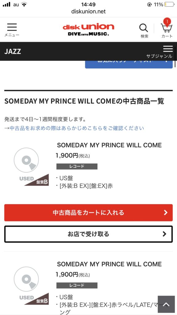 そこからさらにレコードを数枚集めるようになり、さらに、人と話したりネットで読んだりしてジャズレコード収集の知識がついてくると同時に、そのときに名も知れぬオンラインレコードストアで購入した、「someday my prince will come」が「聞くに耐えない状態」であることが発覚。
