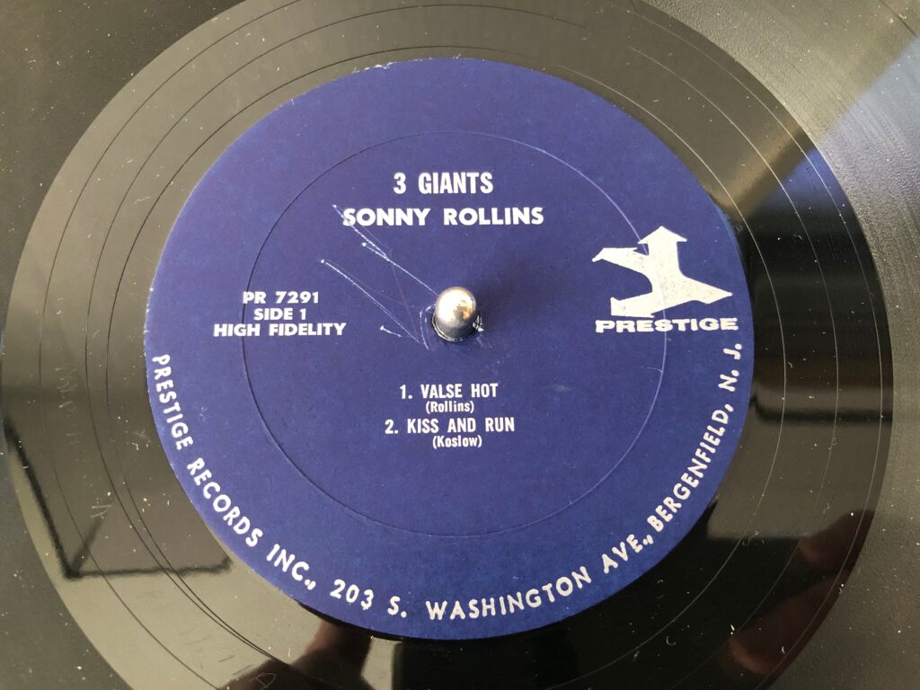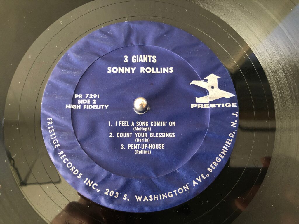 私の持っている盤、Sonny Rollins Clifford Brown And Max Roach 3 Giants! PR7291 1964年USモノラル再発盤 右紺 RVG prlp7038刻印