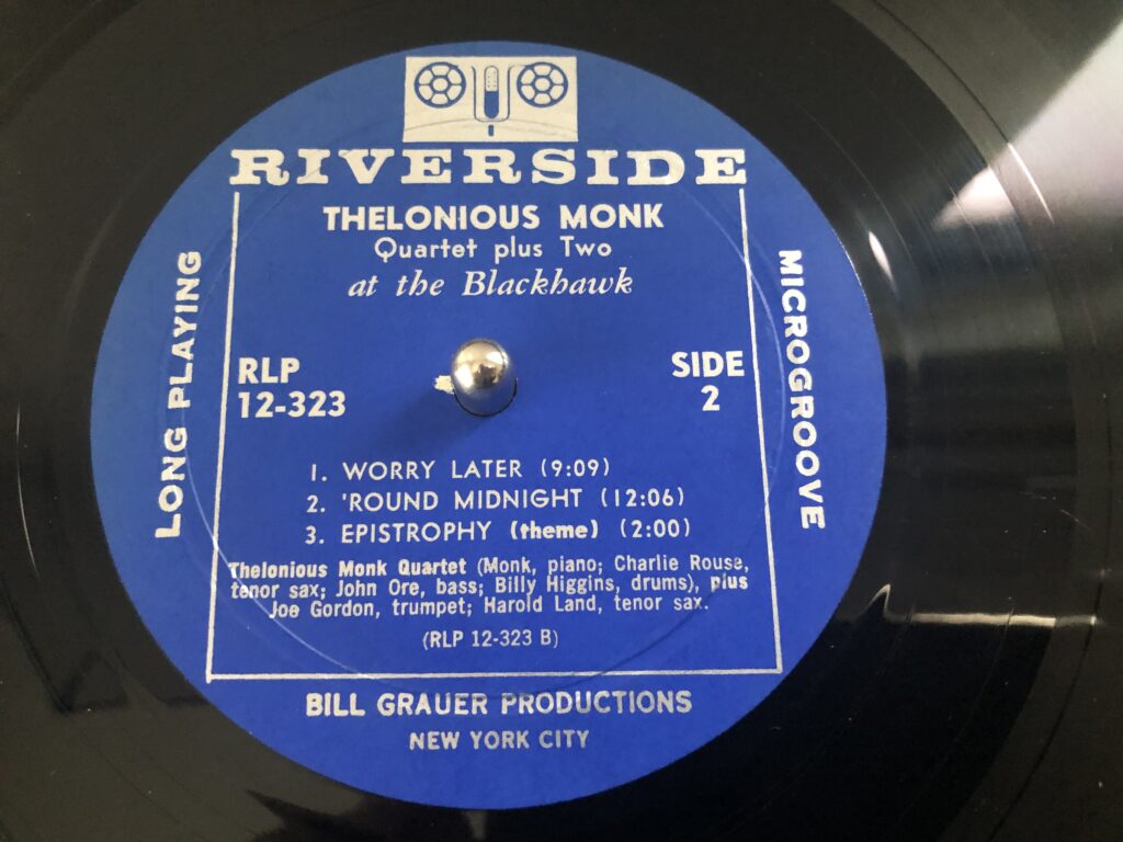 私の持っている盤、Thelonious Monk Quartet Plus Two At The Blackhawk RLP12-323 USモノラル 青小 オリジナル